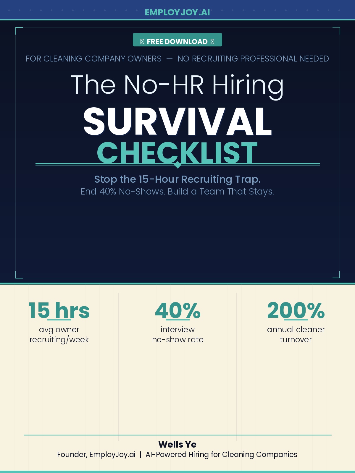 The Cleaning Company Survival Guide: Stop the 15-Hour Recruiting Trap, End 40% No-Shows, and Build a Team That Stays.